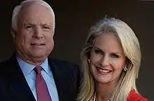 McCain is known for his responses to attacks upon his family. An opponent of his in the 1982 Republican House primary contacted his first wife Carol, seeking negative material on McCain.[140] She refused to discuss her marriage, and then next time McCain met the opponent, he said: "I understand you called my ex-wife. I want you to know that, campaign aside, politics aside, you ever do anything like that again, anything against a person in my family, I will personally beat the shit out of you."[140] The smear campaign against his adopted Bangladeshi daughter during the 2000 South Carolina presidential primary so bothered him that, by some accounts, he considered leaving the Republican Party.[141]