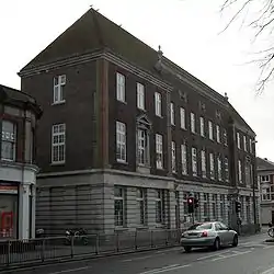 A magistrates' court was established at the old town hall in 1835. Twelve years later, county court status was granted. When the new town hall was built in the 1930s, the arrangement continued, but a new courtroom was provided at the police station in 1940. The present Law Courts building on Christchurch Road dates from 1967 and was designed by a team including Frank Morris.[11]