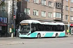 Trolleybuses serve the western part of Tallinn, mainly Mustamäe district. Trolleybus service began in 1965 with a route from the Estonian National Opera "Estonia" to Hipodroom (Hippodrome). Currently there are 4 routes: 1, 3, 4 and 5 from city centre (Kaubamaja and Balti jaam) to Mustamäe. In 2000 Trolleybus line nr 8 was replaced with bus line nr 22, on 1 December 2012 trolleybus line nr 2 was replaced with bus lines 24 and 24A (24A closed by now), on 1 January 2016 trolleybus lines nr 6 and 7 were replaced with hybrid buses nr 42 and 43 and on 2 May 2017 trolleybus line nr 9 was replaced by hybrid buses (line 72).[16][17]