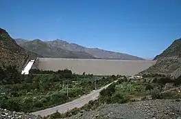 Puclaro Dam is an 83 m tall and 640 m long concrete face gravel fill dam with a crest altitude of 435 m. The volume of the dam is 4,630,000 m³. The dam features a spillway over the dam (maximum discharge 3,800 m³/s). The upstream concrete face varies in thickness from 0.45 m to 0.30 m.[2]