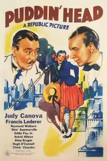 Puddin' Head is a 1941 American comedy film directed by Joseph Santley and written by Jack Townley and Milt Gross. The film stars Judy Canova, Francis Lederer, Raymond Walburn, Slim Summerville, Astrid Allwyn, Eddie Foy Jr., Alma Kruger, Hugh O'Connell and Chick Chandler. The film was released on June 25, 1941, by Republic Pictures.[1][2][3]
