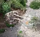 From there, on the opposite side of the river at a non-marked and not easily identifiable location (position: 22°50′24.5″S 65°13′33″W), a steep walk of about half an hour leads up to the village.