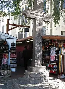 As local lore tells it, on September 4, 1781 the 44 pobladores gathered at San Gabriel Mission and, escorted by a military detachment and two priests from the Mission, set out for the site that Crespí had chosen. In reality, several of the families were probably already working on their plots of land as early as late July.[8] Governor de Neve gave the new town the name El Pueblo de la Reina de los Ángeles-The Town of the Queen of the Angels. In accordance with the Laws of the Indies and Reglamento the new towns in Alta California were to have four square leagues of land; that is a distance marked by one league in each cardinal direction from the town center.[9] The streets, however, were laid out at forty-five degrees from the cardinal directions, a plan which is still preserved in Downtown Los Angeles.[10] The old town limits are still marked by Hoover and Indiana Streets in the west and east respectively. In 1784 an asistencia or sub-mission of the San Gabriel Mission was established on the central plaza, to provide religious services to the settlers.