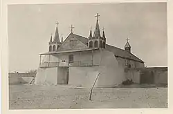 On October 26, 1919, the King of Belgium Albert I, together with Queen Elisabeth of Belgium and Prince Léopold, journeyed to Isleta during their official visit to the United States. The King decorated Pablo Abeita, Governor of the Pueblo, and Father Anton Docher with the Order of Léopold.[15] Abeita gave the king a turquoise cross mounted in silver made by the Isletans.[16] 10,000 people journeyed to Isleta for this grand visit by European royalty.