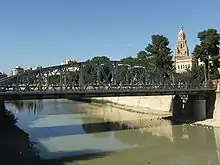 El Puento Nuevo (Spanish for New Bridge) or Puente de Hierro (Spanish for Iron Bridge) is a parabolic metallic bridge spanning the Segura River, completed in 1903 and located in the city of Murcia (Region of Murcia, Spain). As the second bridge built in the city across the river, was called New Bridge to distinguish it from the old bridge (Puente Viejo o Puente de los Peligros), even though today it is the second oldest of the city.