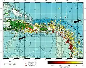 Scientific studies have concluded that an earthquake occurring along this fault zone could generate a significant tsunami.[10] The island of Puerto Rico, which lies immediately to the south of the fault zone and the trench, suffered a destructive tsunami soon after the 1918 San Fermín earthquake.