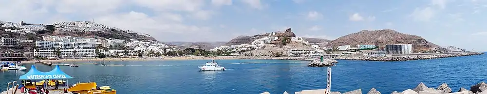 One kilometer northwest of Puerto Rico lies the sister beach of Amadores, a popular tourist destination on the southern coast of Gran Canaria.[1][2]