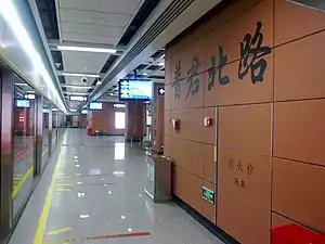 Pujun Beilu Station (Chinese: 普君北路站; pinyin: Pǔjūn Běilù Zhàn; Jyutping: pou2gwan1 bak1lou6 zaam6) is a metro station on the Guangfo Line (FMetro Line 1).[1][2] located under Zhaoxiang Road (兆祥路) just west of its junction Pujun North Road (普君北路) and Shidongxia Road (市东下路)[3] in the Chancheng District of Foshan, near Zhaoxiang Park (兆祥公园) and the Guangdong Cantonese Opera Museum (广东粤剧博物馆).[4] It was completed on 3 November 2010.