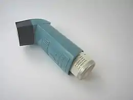 Pulmonary drug delivery is a route of administration in which patients use an inhaler to inhale their medications and drugs are absorbed into the bloodstream via the lung mucous membrane. This technique is most commonly used in the treatment of lung diseases, for example, asthma and chronic obstructive pulmonary disease (COPD). Different types of inhalers include metered-dose inhalers (MDI), dry powder inhalers (DPI), soft mist inhalers (SMI) and nebulizers. The rate and efficacy of pulmonary drug delivery are affected by drug particle properties, breathing patterns and respiratory tract geometry.