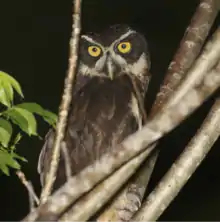 The spectacled owl (Pulsatrix perspicillata) is a large tropical owl native to the neotropics. It is a resident breeder in forests from southern Mexico and Trinidad, through Central America, south to southern Brazil, Paraguay and northwestern Argentina.[1] There are six subspecies.[3] One is occasionally treated as a separate species called the short-browed or brown spectacled owl[4] but the consensus is that it is still merely a race until more detailed analysis can be done.[5]
