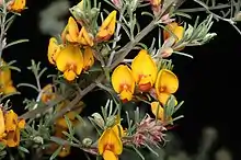 Pultenaea cinerascens is a species of flowering plant in the family Fabaceae and is endemic to central New South Wales. It is an erect to spreading shrub with narrow oblong to wedge-shaped leaves, and groups of yellow and red flowers.