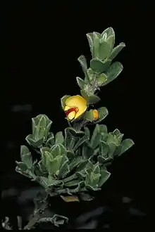 This pultenaea grows in sandy soil over limestone in the Avon Wheatbelt, Coolgardie, Esperance Plains, Hampton, Jarrah Forest, Mallee and Warren biogeographic regions of southern Western Australia.[2]