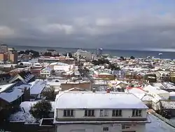 ![]() Top:Panoramic view of downtown Punta Arenas, from La Cruz Hills, Second:Sara Braun Palace (Palacio Sara Braun), Ferdinand Magallen Monument in Muñoz Gamero Square (Plaza Muñoz Gamero) Third:Punta Arenas Sacred Heart Cathedral, Cemetery of Punta Arenas, Fourth:Iselín Santos Ovejero Monument, Goleta Ancud Monument, Bottom:An overview of Strait of Magellan, from Costanera area (all item from left to right) | |