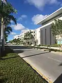 Punta Cana Village, with a population of about 3,000, is being developed by a master plan of the Punta Cana Group. In 1969 the area was purchased by this organization and development began in the following decades.[7] The main avenue, Boulevard Primero de Noviembre, is lined with low office buildings. Branching off are streets with gated communities on both sides. To the east are single family residences. Small apartment buildings are to the west. A shopping area is near the airport and beyond the apartment houses is a mall and several stores.[8] East of the village is the Westin Resort and golf course by the ocean. There is a public beach, Playa Blanca, with a shuttle bus from the Village's sole hotel. An upscale planned community, Cap Cana, is south of Punta Cana Village.[9]