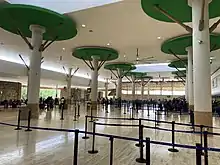 Punta Cana International Airport (IATA: PUJ, ICAO: MDPC) is a privately owned commercial airport in Punta Cana, eastern Dominican Republic. The airport was built with open-air terminals and roofs covered in palm fronds. Grupo Punta Cana built the airport, which was designed by architect Oscar Imbert, and inaugurated it in December 1983.[1] It is owned by Grupo Punta Cana and became the first privately owned international airport in the world.[2]