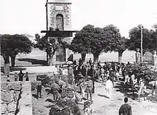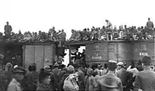 The 5th Cavalry Division and 14th Brigade arrived in Rayak on 6 October to find considerable destruction caused by an RAF air-raid on 2 October and captured some prisoners, railway rolling stock and military equipment.[45][32][46] Here the remains of 32 German aircraft were found, "including some of the latest type, [which] had been either abandoned or burnt by the enemy."[47] Military equipment, engineers' stores, several locomotives and rail trucks were captured at Rayak. The 14th Cavalry brigade also captured 177 prisoners and some guns when they occupied Zahle a few miles north of Rayak, also without opposition.[22][32][45][46]