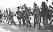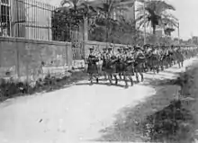 The 7th (Meerut) Division began their march to Beirut in three columns. The leading column consisted of the Corps Cavalry Regiment, one company of infantry and the 2nd Light Armoured motor Battery.[15][16][17] The second column consisted of the 3rd and 4th Companies Sappers and Miners, the 121st Pioneers with the 53rd Sikhs and 2nd Battalion Leicestershire Regiment (28th Brigade).[18] The remainder of the 28th Brigade with the 19th and 28th Brigades of infantry, the 261st, 262nd and 264th Brigades of Royal Field Artillery (RFA) and the 522nd Field Coy, RE completed the 7th (Meerut) Division.[19]