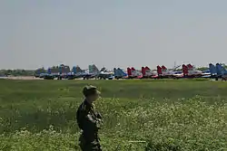 The base is home to the 332nd Guards Independent Helicopter Regiment as part of the 6th Air and Air Defence Forces Army.[1]