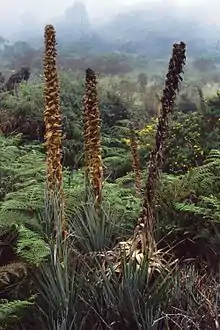 Puya is a genus of the botanical family Bromeliaceae. It is the sole genus of the subfamily Puyoideae, and is composed of 226 species.[1][2] These terrestrial plants are native to the Andes Mountains of South America and southern Central America. Many of the species are monocarpic, with the parent plant dying after one flower and seed production event.