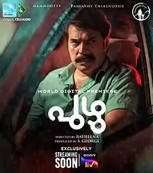 Puzhu (Malayalam: പുഴു; transl. Worm) is a 2022 Indian Malayalam-language psychological drama film directed by debutant Ratheena and jointly written by Harshad and Suhas-Sharfu.[1] The film stars Mammootty & Parvathy Thiruvothu in the lead role. Cinematography of the film is handled by Theni Eswar and the film score and songs are composed by Jakes Bejoy. Mammootty played a negative shaded role in the film.
