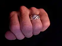 A puzzle ring is a jewelry ring made up of multiple interconnected bands, which is a type of mechanical puzzle most likely developed as an elaboration of the European gimmal ring.[1]
