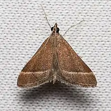 The wingspan is about 16 mm.[3] The forewings are purplish brown with a dark brown exterior line. The subterminal area is pale brown, shaded with whitish. The hindwings are pale fuscous with a black terminal line.[4] Adults have been recorded on wing from March to October.[5]