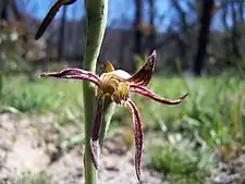 | Pyrorchis nigricans growing near Bertram, W.A. | |