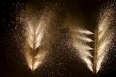 - Gerbs - Pyrotechnic fountains used to produce a controlled plume of sparks, and may be classified as fast gerbs or duration gerbs depending on the burn duration. Special waterfall gerbs are often used to produce an effect similar to a waterfall, using several hung upside down in a line.