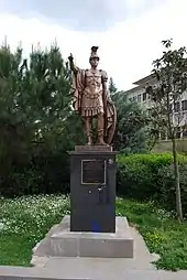 Pyrrhus (/ˈpɪrəs/; Greek: Πύρρος Pýrrhos; 319/318–272 BC) was a Greek king and statesman of the Hellenistic period.[2][3][4][5][6] He was king of the Greek tribe of Molossians,[5][7] of the royal Aeacid house,[8] and later he became king (Malalas also called him toparch[9]) of Epirus. He was one of the strongest opponents of early Rome, and had been regarded as one of the greatest generals of antiquity.[10] Several of his victorious battles caused him unacceptably heavy losses, from which the term "Pyrrhic victory" was coined.