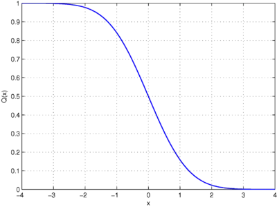 In statistics, the Q-function is the tail distribution function of the standard normal distribution.[1][2] In other words, is the probability that a normal (Gaussian) random variable will obtain a value larger than standard deviations. Equivalently, is the probability that a standard normal random variable takes a value larger than .
