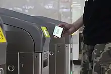 Line 1 of the Mumbai Metro in India allows users to purchase a ticket on their phones using QR code payments. Instead of swiping an RFID card or single-use token, a QR code is generated on the Paytm app which is then read by a scanner mounted on the turnstile.[12]