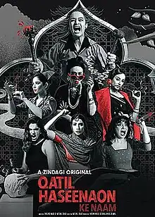 Qatil Haseenaon Ke Naam is a Pakistani crime fiction drama original web series streaming on ZEE5.[1] It is created and directed by British-Indian director Meenu Gaur and written by Farjad Nabi and Meenu Gaur.[2] The series is produced by Hasan Raza Abidi and Shailja Kejriwal.[3] This six episode web series was released on 10 December 2021.[4] It stars Rubya Chaudhry, Sanam Saeed, Sarwat Gilani, Eman Suleman and Faiza Gillani in the lead roles.[5][6]