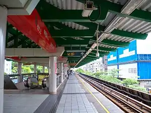 The two-level, elevated station structure with one island platform and one exit.[2] The station is situated between Donghua Street and Xian Street, near the entrance of Gongguan. The washrooms are inside the entrance area.