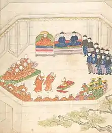 There are also different interpretations of titles and symbolic gestures between Tibetan and Qing authorities. The 13th Dalai Lama, for example, knelt, but did not kowtow, before the Empress Dowager Cixi and the young Emperor while he delivered his petition in Beijing. Chinese sources emphasize the submission of kneeling; Tibetan sources emphasize the lack of the kowtow. Titles and commands given to Tibetans by the Chinese, likewise, are variously interpreted. The Qing authorities gave the 13th Dalai Lama the title of "Loyally Submissive Vice-Regent", and ordered to follow Qing commands and communicate with the emperor only through the Manchu amban in Lhasa; but opinions vary as to whether these titles and commands reflected actual political power, or symbolic gestures ignored by Tibetans.[33][34] Some authors claim that kneeling before the Emperor followed the 17th-century precedent in the case of the 5th Dalai Lama.[35] Other historians indicate that the emperor treated the Dalai Lama as an equal.[36]