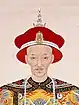 Qing succession and inheritance policies made it difficult for empresses and their relatives to build power at court, as they had in the Han dynasty for example.[13] Threats to imperial power usually came from within the imperial clan.[14] When the young Fulin was chosen to succeed his father Hong Taiji in September 1643, two "prince regents" were selected for him: Hong Taiji's half-brother Dorgon (1612–1650) and Nurhaci's nephew Jirgalang (1599–1655). Soon after the Manchus had seized Beijing under Dorgon's leadership in May 1644, Dorgon came to control all important government matters.[15] Official documents referred to him as "Imperial Uncle Prince Regent" (Huang shufu shezheng wang 皇叔父攝政王), a title that left him one step short of claiming the throne for himself.[16] A few days after his death, he received a temple name (Chengzong 成宗) and an honorific posthumous title (Yi Huangdi 義皇帝, "Righteous Emperor"), and his spirit tablet was placed in the Imperial Ancestral Temple next to those of Nurhaci and Hong Taiji.[17] In early March 1651 after Dorgon's supporters had been purged from the court, these titles were abrogated.[18]
