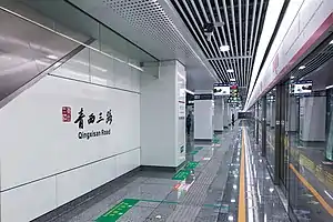Qingxisan Road (Chinese: 青西三路) is a metro station on Line 8 of the Hangzhou Metro in China. It was opened on 28 June 2021, together with the Line 8.[1] It is located in the Qiantang District of Hangzhou.