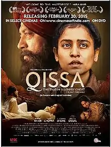 Qissa is a 2013 Indian-German drama film in Punjabi written and directed by Anup Singh. The film was released in Indian theaters on 20 February 2015 nationwide and simultaneously on DVD and VOD as well.[1] The film was screened in the Contemporary World Cinema section at the 2013 Toronto International Film Festival[2][3] where it won the Netpac Award for World or International Asian Film.[4] The theme of the film focuses on desire of a Sikh man towards having a son to continue the family lineage.