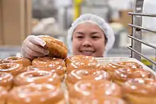 The bakery produces over 40 varieties of donuts,[20][21] including classic cake donuts and yeast raised varieties.[22][23] It also offer cookies, muffins, pastries, and other baked goods.[24][25][26][27]