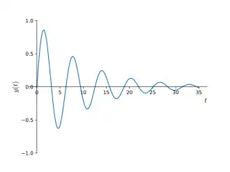 where M is the mass, k is the spring constant, and D is the damping coefficient, defined by the equation Fdamping = −Dv, where v is the velocity.[24]