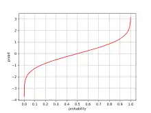 In probability and statistics, the quantile function, associated with a probability distribution of a random variable, specifies the value of the random variable such that the probability of the variable being less than or equal to that value equals the given probability. Intuitively, the quantile function associates with a range at and below a probability input the likelihood that a random variable is realized in that range for some probability distribution. It is also called the percentile function, percent-point function or inverse cumulative distribution function.
