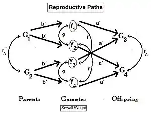 - Wright, S. (1921). "Systems of mating. I. The biometric relations between parent and offspring". Genetics. 6 (2): 111–123. doi:10.1093/genetics/6.2.111. PMC 1200501. PMID 17245958.