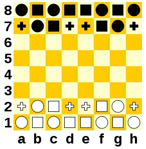 ![]() The starting position of Quantum on an 8 by 8 board | |