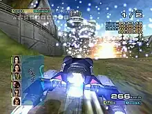 The game features four modes of play. 'Tournament' mode involves the completion of a series of events. Tournaments are offered in increasing scales of difficulty, with Novice and Amateur modes unlocked initially, and higher difficulty modes increasing the speed of the vehicles during races.[2] Each selectable character in this mode has a rival, with additional points awarded to destroying a rival's vehicle in a race. Upon completion of the tournament, a one-on-one 'Nemesis Challenge' race is staged against the player's rival, allowing them to unlock playing as the rival. 'Time Attack' is a solo timed single race in which laps can be recorded as a 'ghost' for others to compete against. 'Quick Race' is a single race against computer opponents on an unlocked track. 'Multiplayer' mode supports local split-screen races for two to four players.[4]