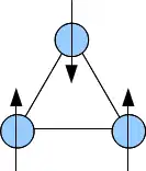 The quantum spin liquid state was first proposed by physicist Phil Anderson in 1973 as the ground state for a system of spins on a triangular lattice that interact antiferromagnetically with their nearest neighbors, i.e. neighboring spins seek to be aligned in opposite directions.[2] Quantum spin liquids generated further interest when in 1987 Anderson proposed a theory that described high temperature superconductivity in terms of a disordered spin-liquid state.[3][4]