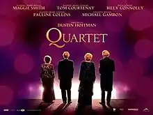 Quartet is a 2012 British comedy-drama film based on the play Quartet by Ronald Harwood, which ran in London's West End from September 1999 until January 2000.[2] It was filmed late in 2011 at Hedsor House, Buckinghamshire. The film is actor Dustin Hoffman's directorial debut.