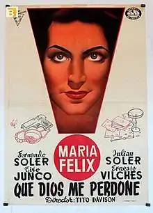 Que Dios me perdone (English title: May God Forgive Me), is a 1948 Mexican film produced by Cinematográfica Filmex S.A and directed by Tito Davison,[1] starring María Félix, Fernando Soler and Julián Soler.[2][3]