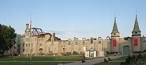 The Voltigeurs de Québec Armoury, formerly Grande-Allée Armoury (French: Manège militaire Grande-Allée, or simply Manège militaire), was built as a Gothic Revival drill hall for the infantry regiment Les Voltigeurs de Québec in Quebec City, Quebec, Canada. Designed by architect Eugène-Étienne Taché and constructed between 1885 and 1888,[3] it is a National Historic Site.