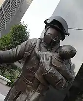 A similar memorial known as the Ontario Firefighter Memorial was also unveiled in 2005, honouring firefighters who died while serving the public.[12] The memorial portrays a firefighter in the midst of rescuing a child.[18] The memorial was also designed by Puchta, and included a red plinth shaped like a Maltese Cross, the international symbol for firefighting;[12] and a list of firefighters who died on duty.[18]
