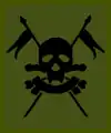 The regiment's nickname, the 'Death or Glory Boys', came from their cap badge and was known as "the motto".[4] This was the combined cap badges of the two antecedent regiments, and features a pair of crossed lances, from the 16th/5th Queen's Royal Lancers, together with a skull and crossbones, below which is a ribbon containing the words 'Or Glory'. This comes from the 17th/21st Lancers, and was the cap badge of the 17th Lancers (the original 'Death or Glory Boys').[1]