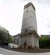 In 2022 works started to complete repairs to the masonry and replace the copper roof, following a fail of masonry. The timber louvres around the bell chamber will be replaced along with repairs or replacement of the flat roofs to the balconies. The work is expected to take two years to complete.[3] The work required an 83m free-standing scaffold tower consisting of an inner access scaffold, outer scaffold exoskelton and a besoke circular temporary roof covering.[4] Propping was installed in the basement tunnels and transfer the load into the tower's foundations.[3]